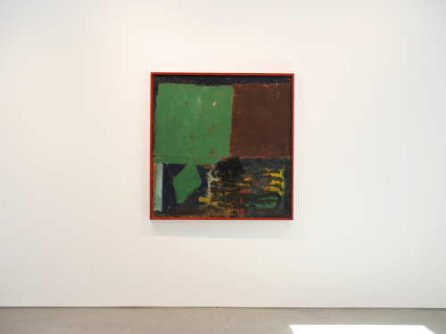 In it, we see the soft hues of sunburned grasses or of a swampy enclave; the red of a clay-rich dirt; the deep yellow of pollen. Dabs and gestures of purple, pink, red and blue borrow from the botanical. But this is not necessarily an exhibition about flowers or their symbolism. It is an exhibition about painting itself, about process; and painting is a process of encoding. As marks are made – here, on board – thoughts and emotions are transferred and conveyed, sometimes incidentally, unconsciously, even against the painter’s will. Brameld and Staples’ marks are robust but in some parts of some paintings also effortless. In this way, the works feel fleeting, as if they might escape us were they not anchored here in this garden. But the reverse is also true: this garden frees the works, which in many ways are also heavy. The lightness of long grass counters the geometry and the layers of the paintings, some of which are affixed with large timber panels or are the product of combining multiple boards in a marriage of marks. The textures and smells of this garden are at once grounding and lifting, which helps one to see.